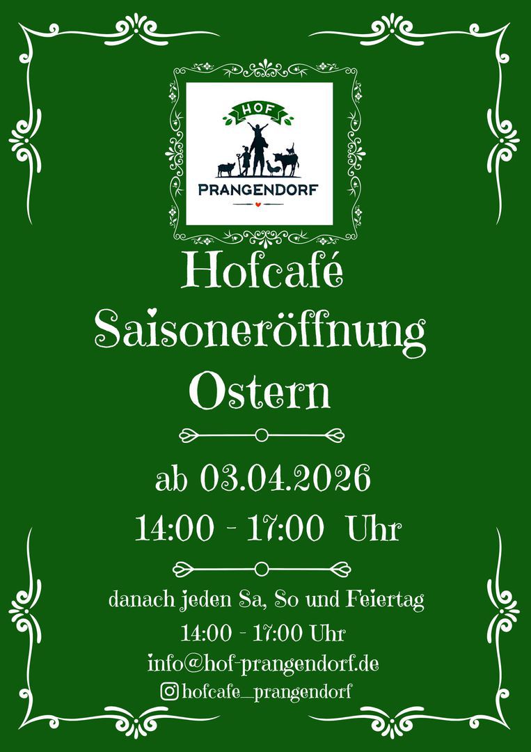 Da die Plätze begrenzt sind, bitten wir um Reservierung per Mail an info@hof-prangendorf.de und um Vorauszahlung bei der Anmeldung. Bitte gebt bei Eurer Reservierung auch eventuelle Unverträglichkeiten an (z. B. Laktose, Gluten), damit wir gut für Euch planen können.